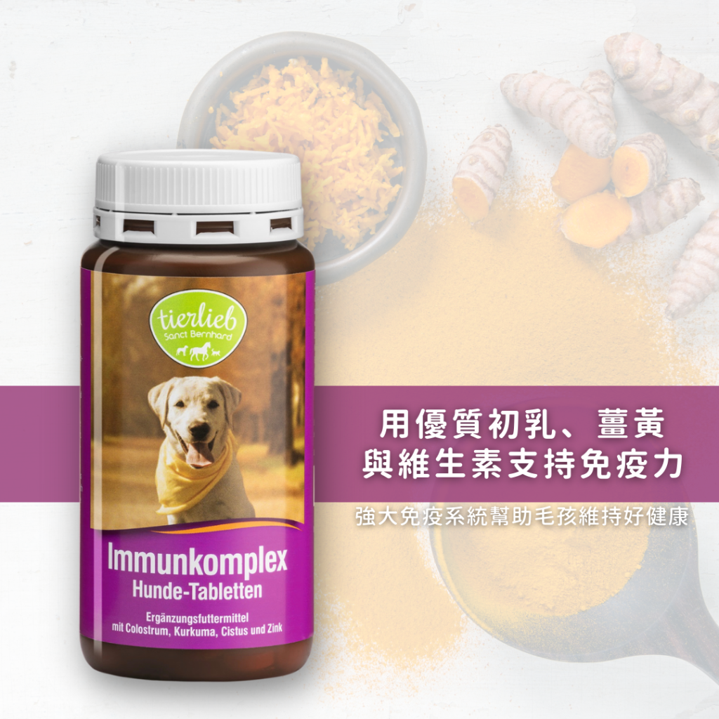 保健老犬照護!免疫球蛋白維持免疫力 發佈留言 / 好朋友知識站 / 作者: Tierlieb 為什麼毛孩需要補充初乳薑黃?⠂高齡犬/熟齡犬:隨著年齡增長,免疫力逐漸下降⠂體質敏感、容易生病的狗狗:抵抗力不足,需要加強防護⠂壓力大或環境改變:搬家、旅行、分離焦慮等造成免疫負擔⠂恢復期犬隻:手術或生病後,需要營養支持加速恢復⠂季節交替/流行病期間:外界病原多,額外提升防護力⠂皮膚與代謝問題:需要鋅與維生素群來維持健康 三大核心成分 牛初乳 (含免疫球蛋白、乳鐵蛋白)增強免疫防護,幫助抵抗外來病原提供多重免疫因子,維持自然抵抗力薑黃根 & 岩薔薇多酚天然抗氧化劑,對抗自由基損傷保護細胞健康,延緩老化鋅元素 & 維生素群幫助免疫細胞功能,提升抵抗力維持皮膚健康與正常代謝 為什麼選擇《初乳薑黃免疫補充錠》?特別為老犬設計,維持免疫系統功能草本抗氧化 + 免疫蛋白雙重守護添加鋅與維生素群,全面營養補充專為免疫力容易低下的熟齡與高齡犬設計,結合初乳免疫球蛋白、草本抗氧化萃取與鋅元素,全面支持狗狗的免疫功能,維持活力與健康。 點我立即下單『初乳薑黃免疫補充錠』