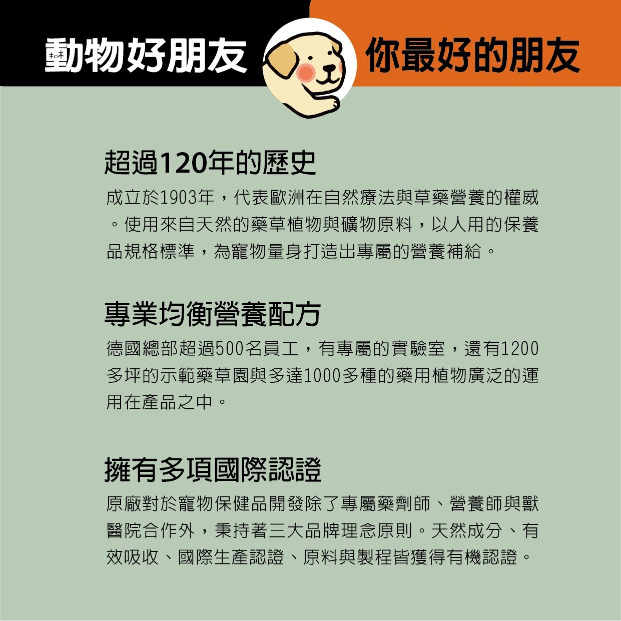 德國動物好朋友,擁有50多種國際歐盟認證的保健品,搭配使用效果加倍。