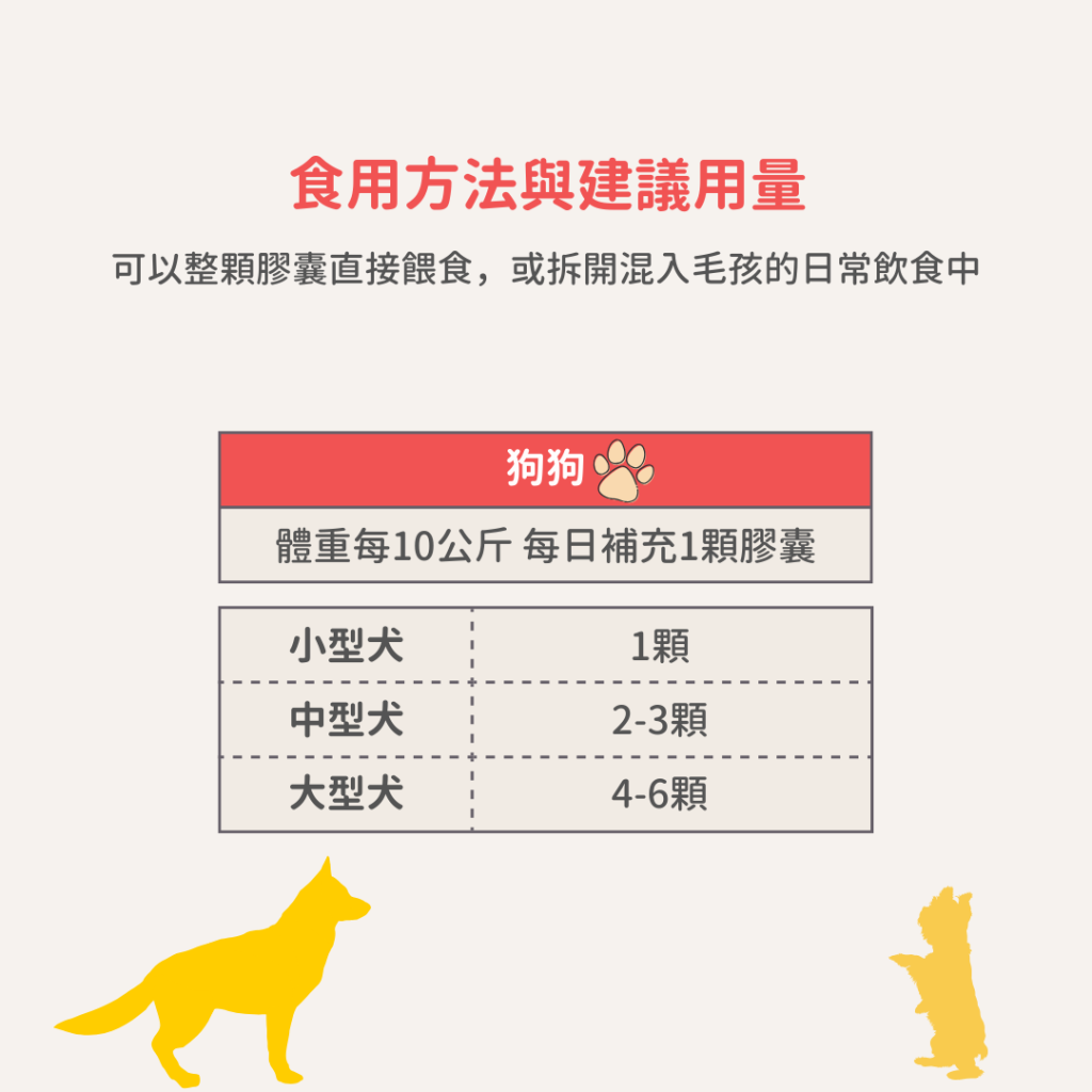 體重每10公斤每日補充1顆膠囊