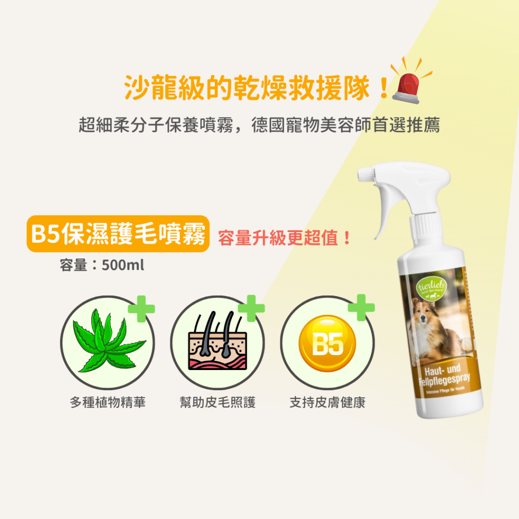 【狗用】B5保濕護毛噴霧 皮毛保健 順毛液 保養品等級B5 維持毛髮亮麗與皮膚健康 數量