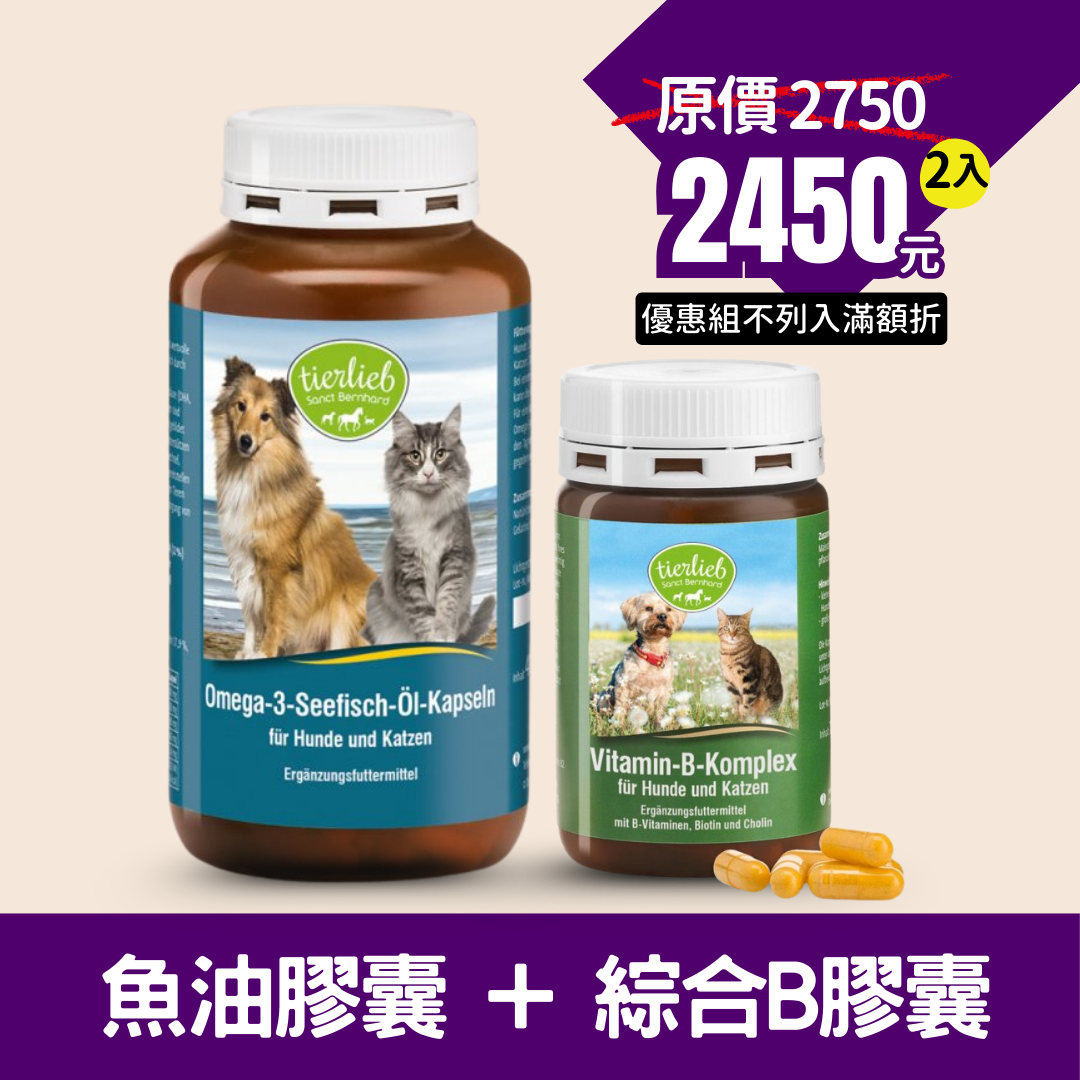 【限時優惠組】綜合維他命B膠囊+魚油膠囊 維生素B群幫助神經系統 Omega-3魚油 維持心臟、眼睛、腦部發育健康 寵物合力他命